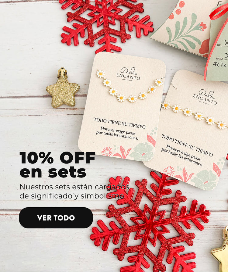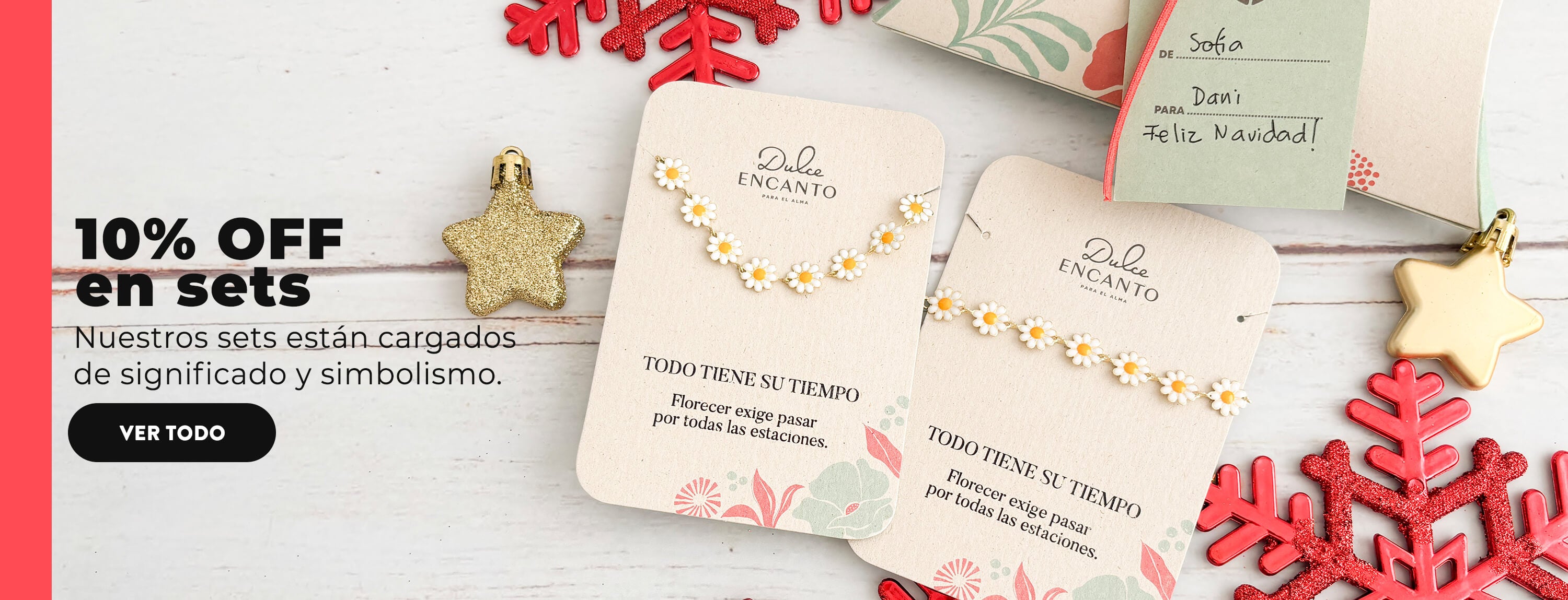 Bienvenid@ a Dulce Encanto tu tienda online de accesorios de moda y regalos con intenciones para mujer. Tenemos para ti la mejor bisuterĂa y accesorios para ti llenos de mensajes positivos con un toque muy femenino. Compra Aretes, Collares, Pulseras, Tobilleras, Sets y Regalos para Mujer.