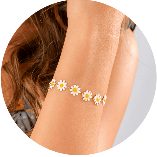 Pulsera flor de nacimiento margarita mes de abril con mensaje para mujer. El dije de flor de margarita es símbolo de alegría. Representa el amor leal y la belleza en la sencillez de las cosas. Nuestras pulseras están llenas de significado y amor para...- $32.900