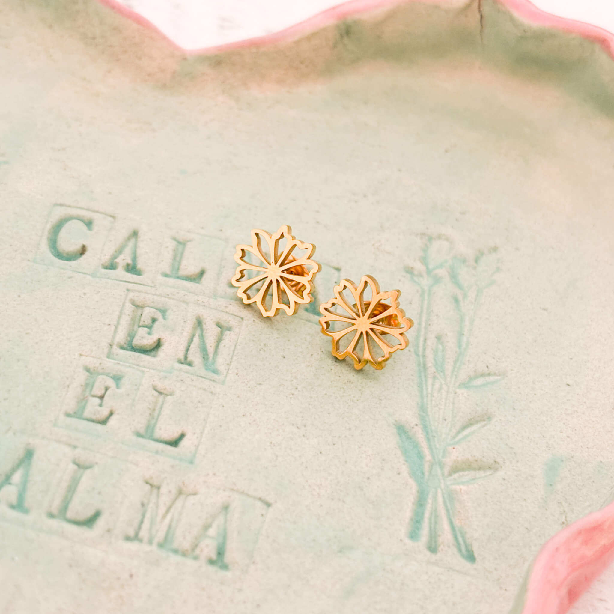 Aretes en forma de flor radiante, diseñados para reflejar tu luz interior. Representan vitalidad, belleza y confianza. Ideales para iluminar tus días con frescura y alegría.