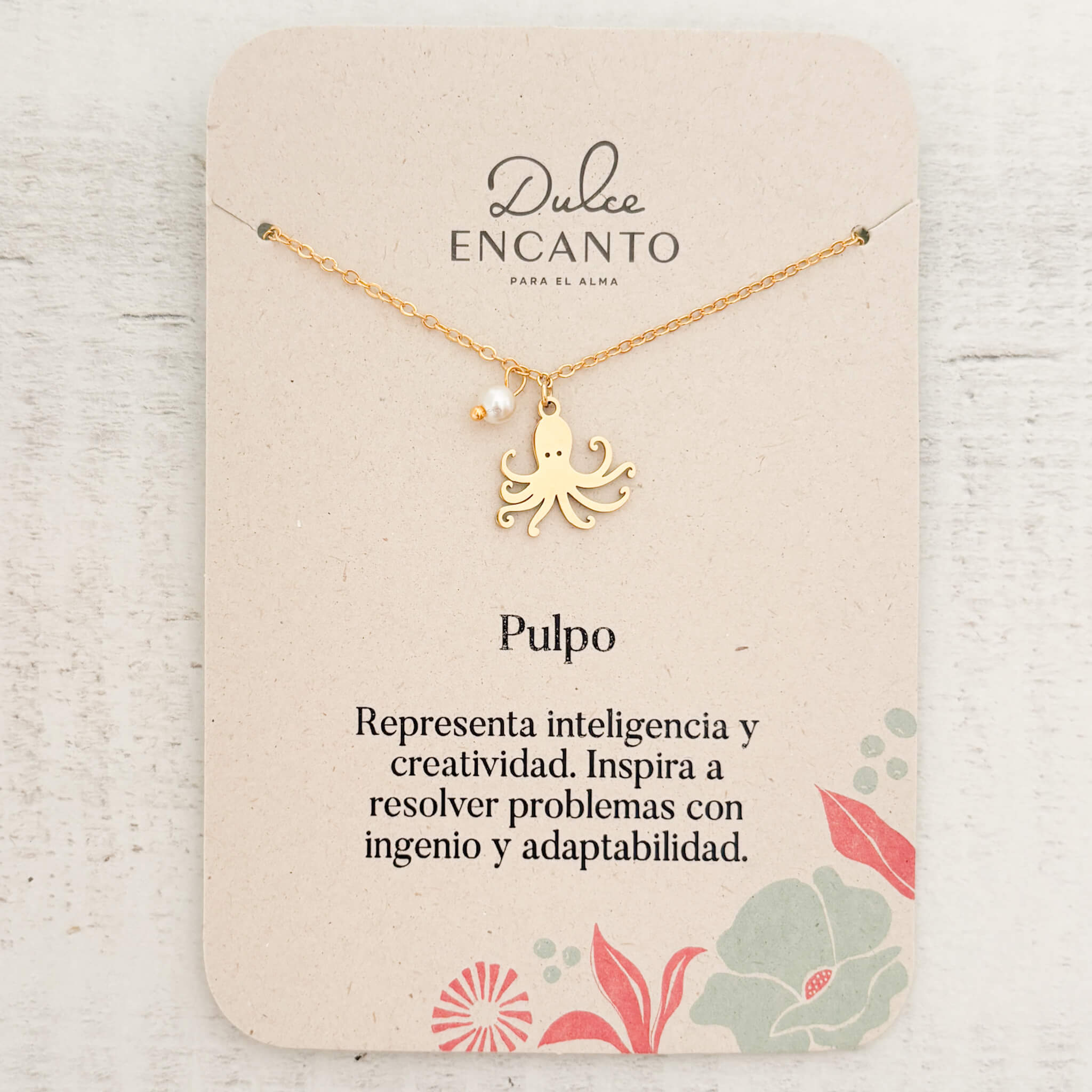 Cadena pulpo con mensaje para mujer. El dije de pulpo representa inteligencia, creatividad y flexibilidad. Inspira a resolver problemas con ingenio y adaptabilidad. Nuestras cadenas están llenas de significado y amor para inspirar y empoderar.