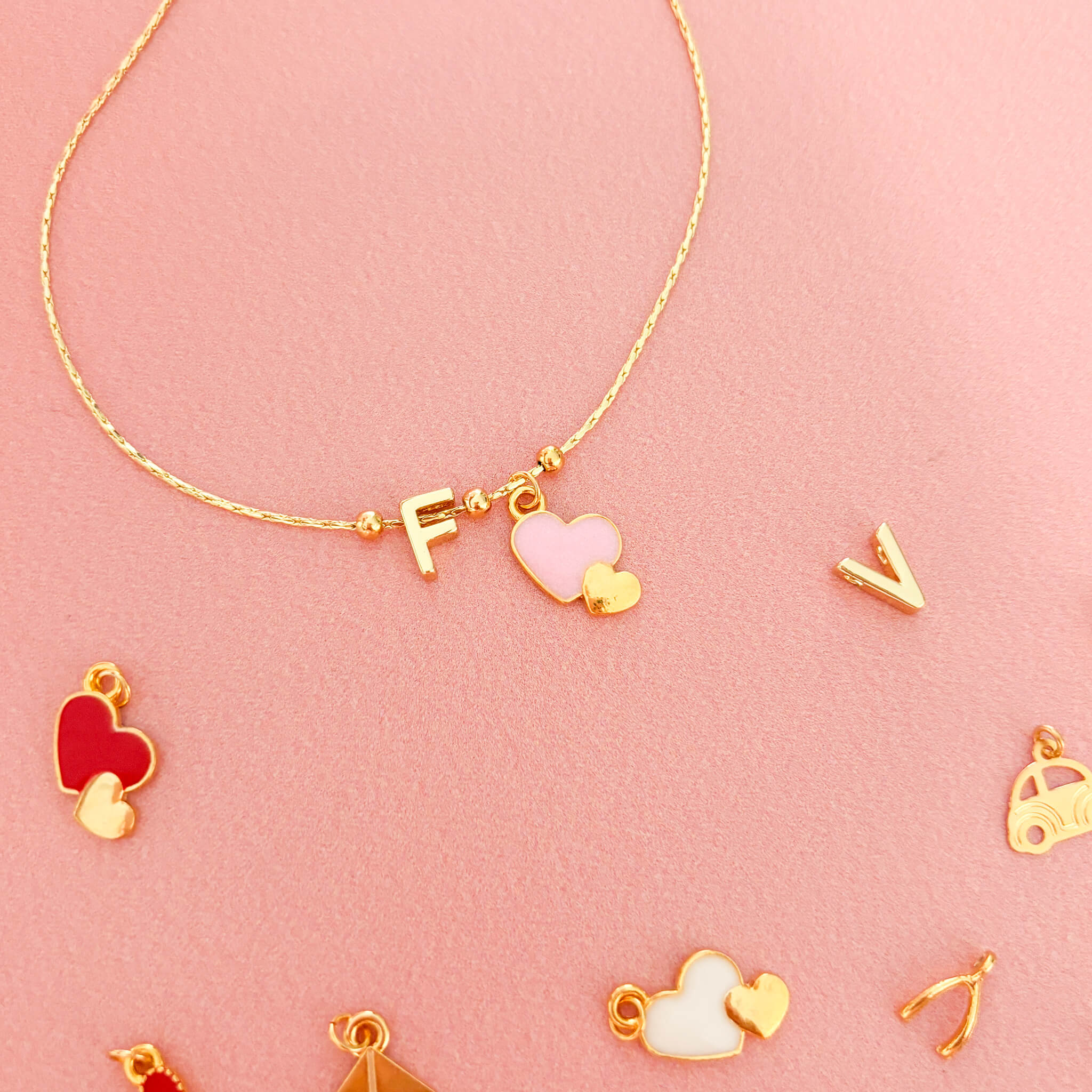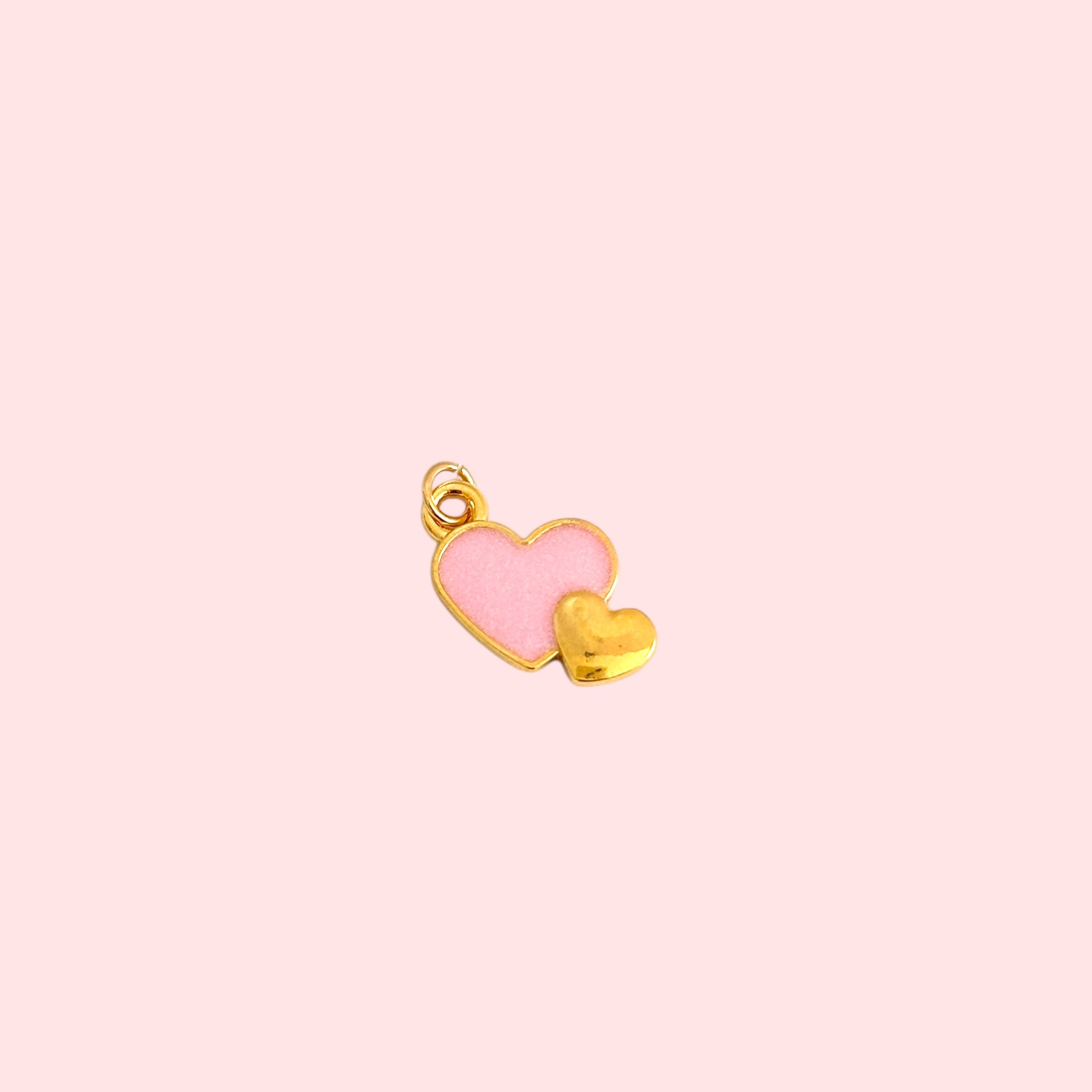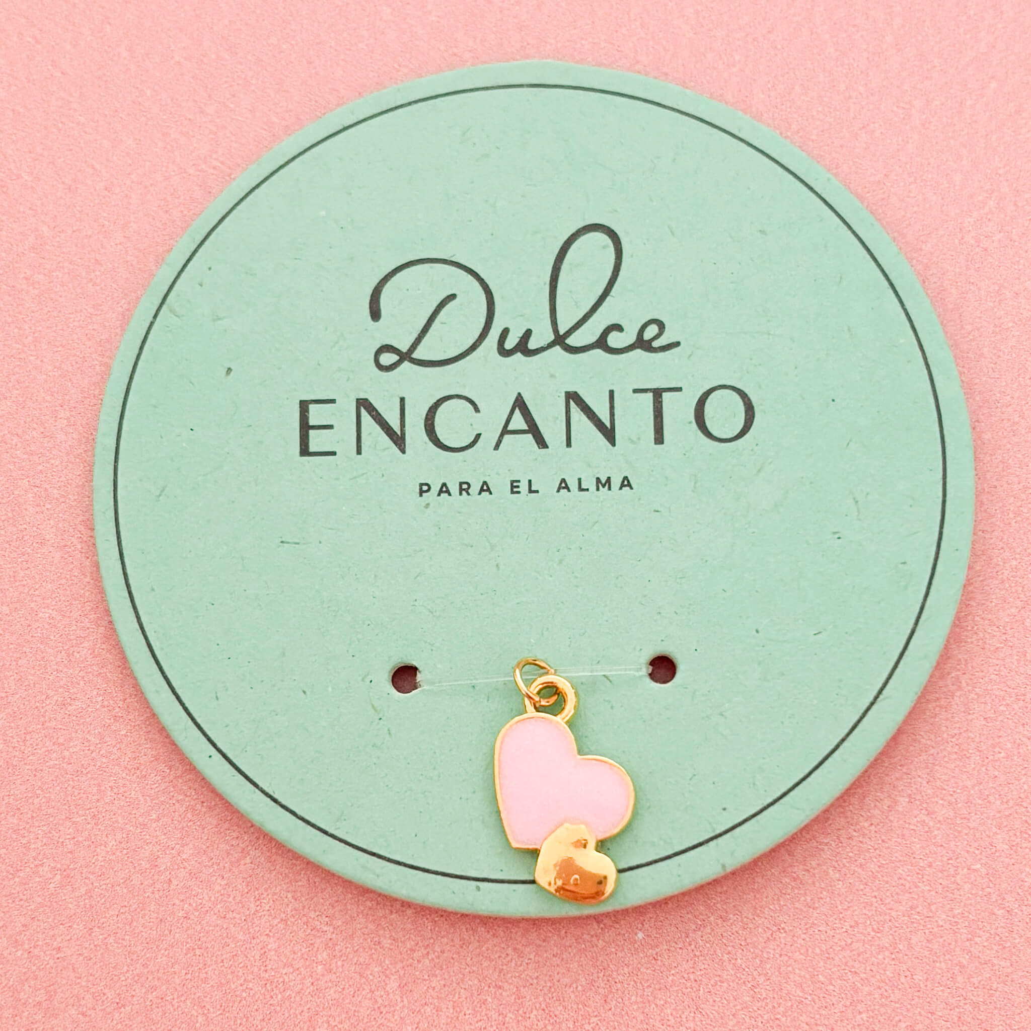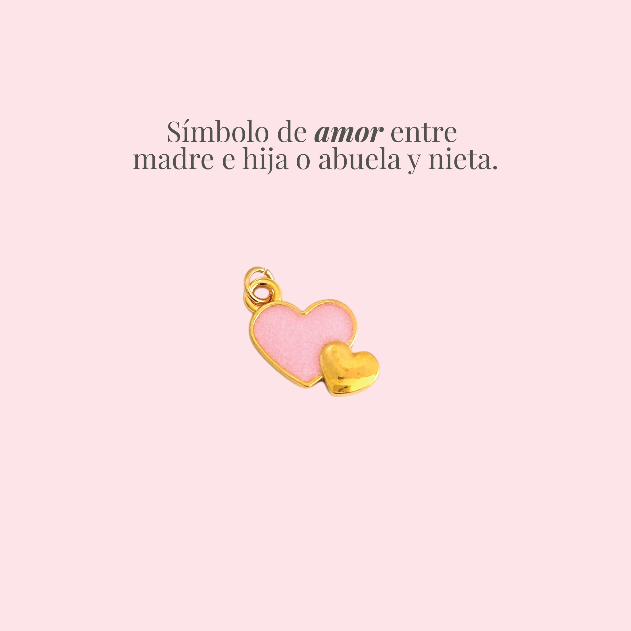 Personaliza tu cadena con este dije con 2 corazones, uno rosado y el otro dorado, símbolo de amor entre madre e hija o abuela y nieta.