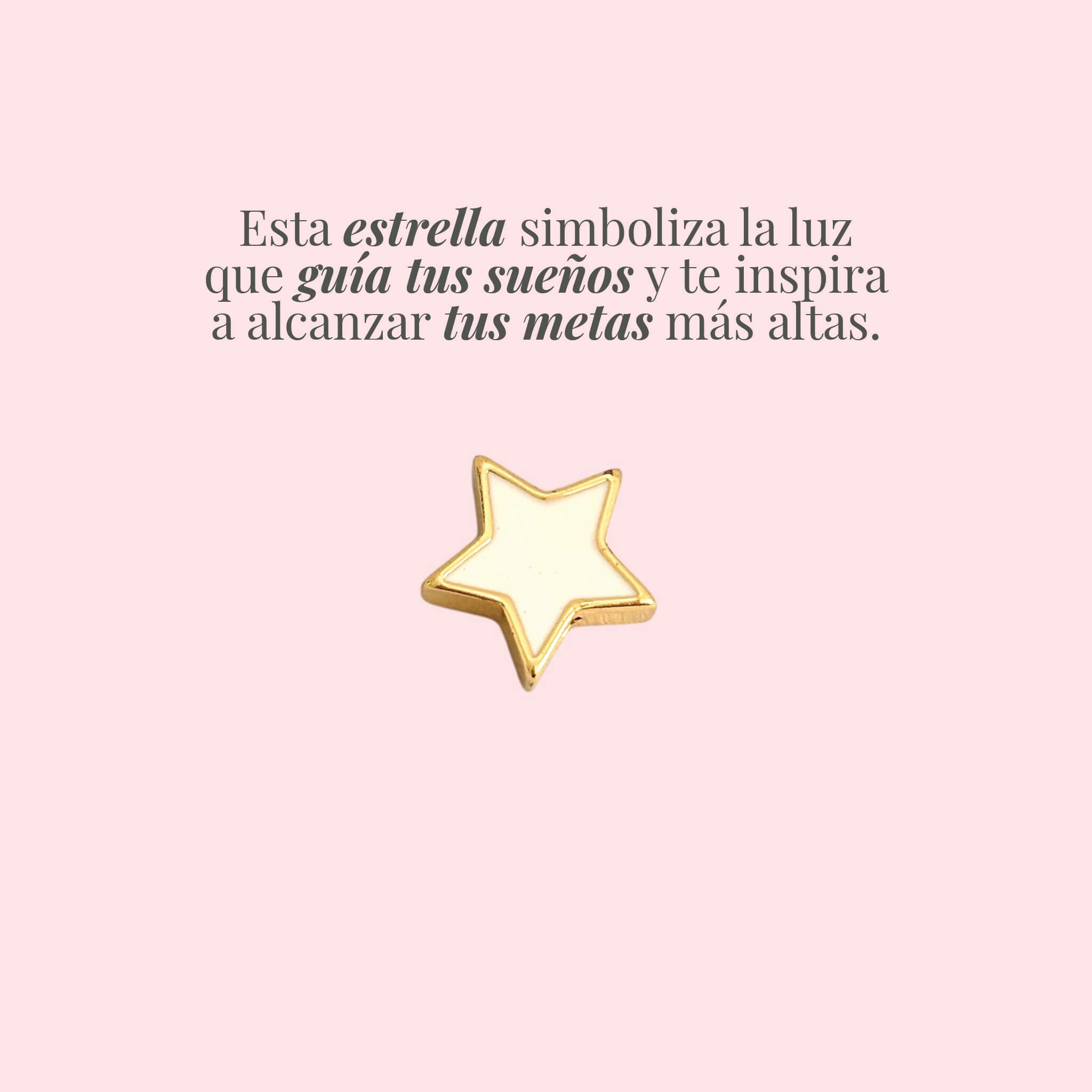Personaliza tu cadena con este dije estrella color blanco. Brilla con luz propia y sigue tu camino con confianza. La estrella blanca simboliza espiritualidad y conexión con lo divino.