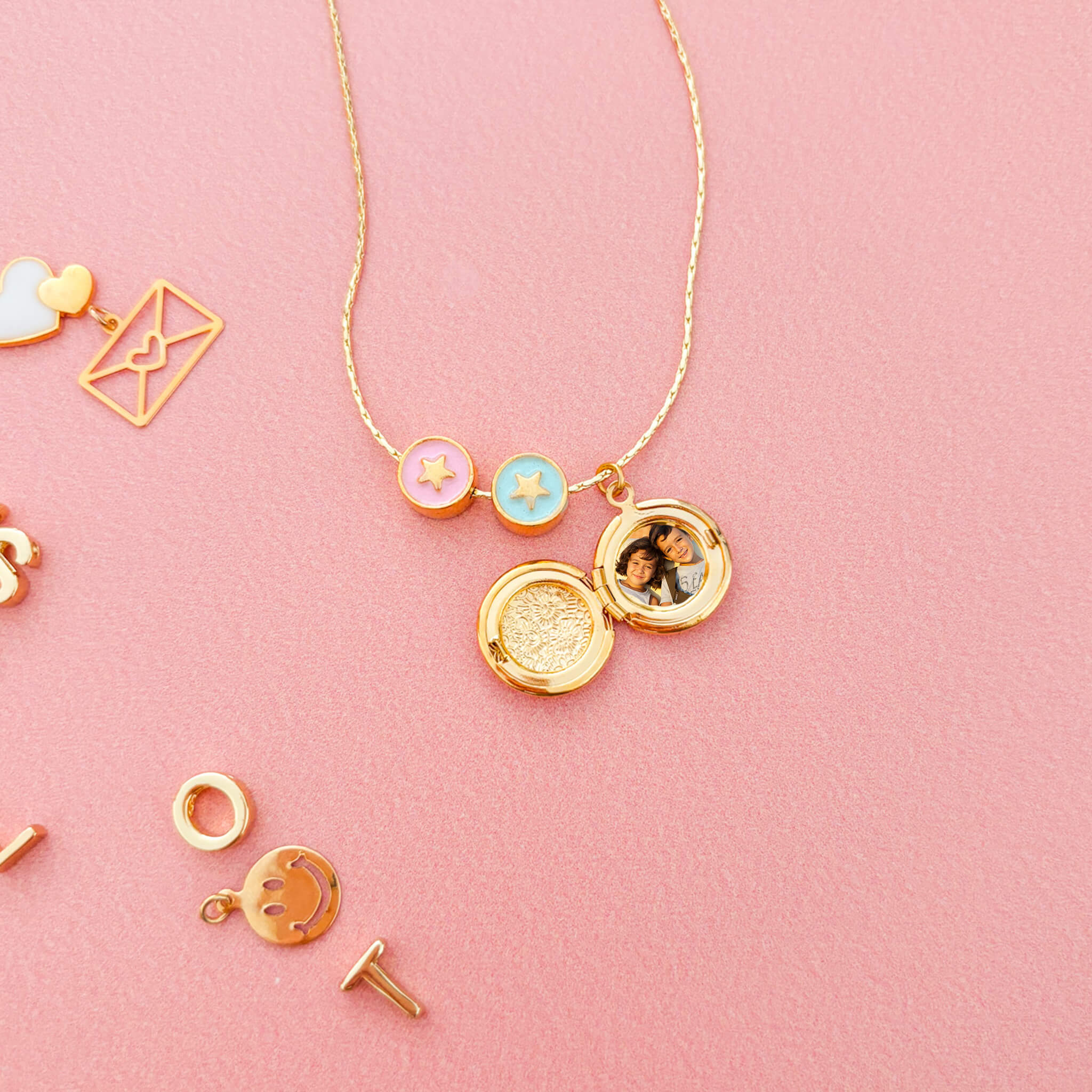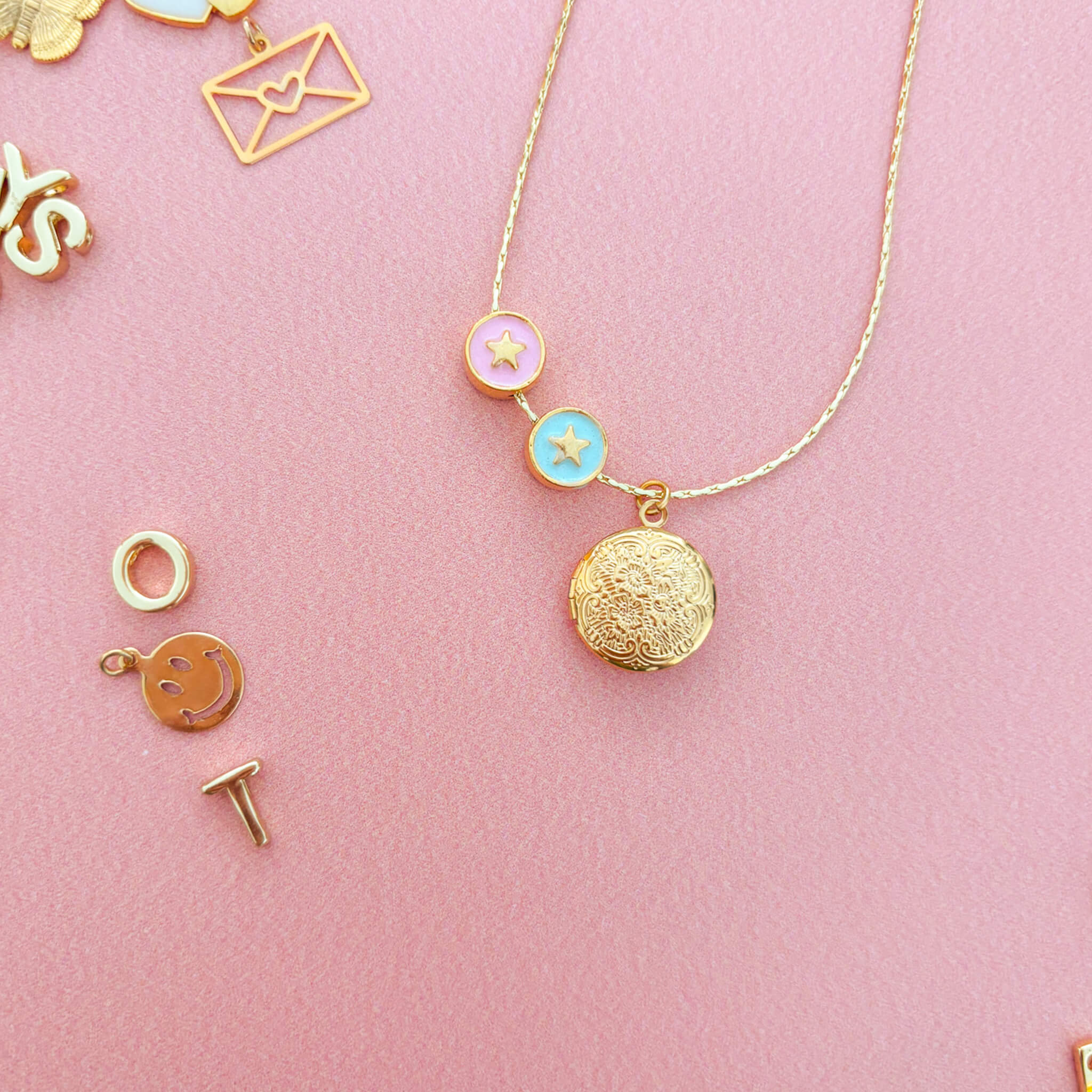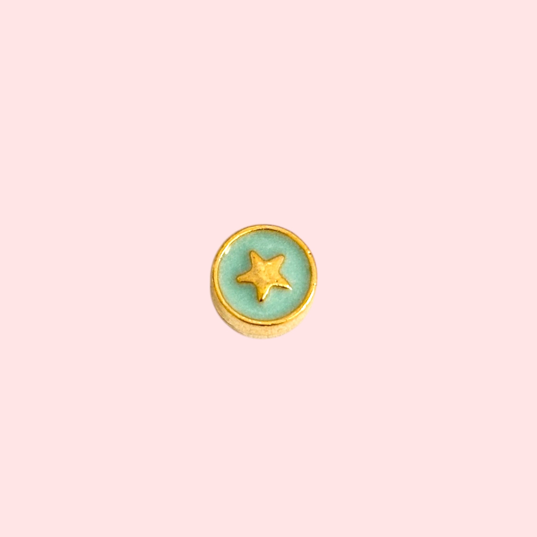 Personaliza tu cadena con este dije estrella redondo color azul cielo. La calma y la inspiración te acompañan con este dije que representa paz, armonía y esperanza.
