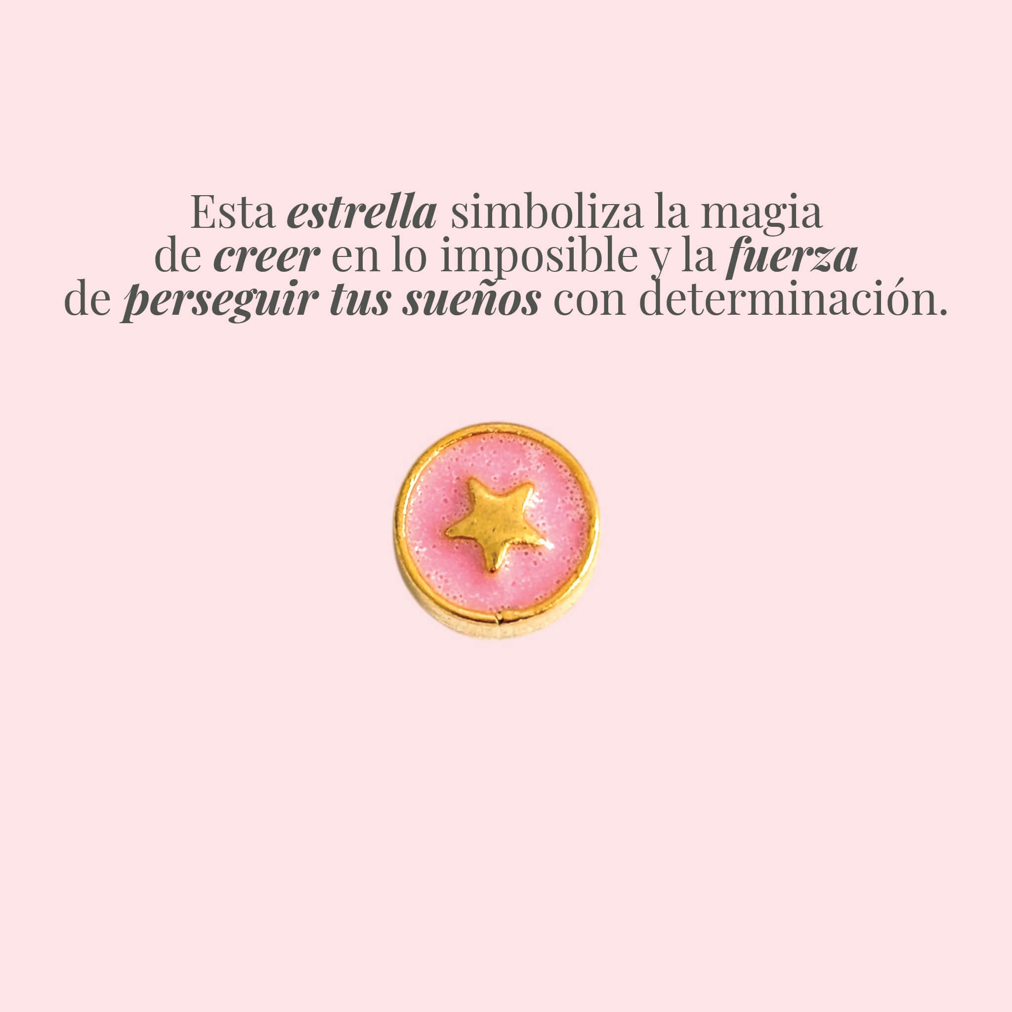 Personaliza tu cadena con este dije estrella redondo color rosado. Una estrella con energía dulce y amorosa, perfecta para iluminar tu día a día.