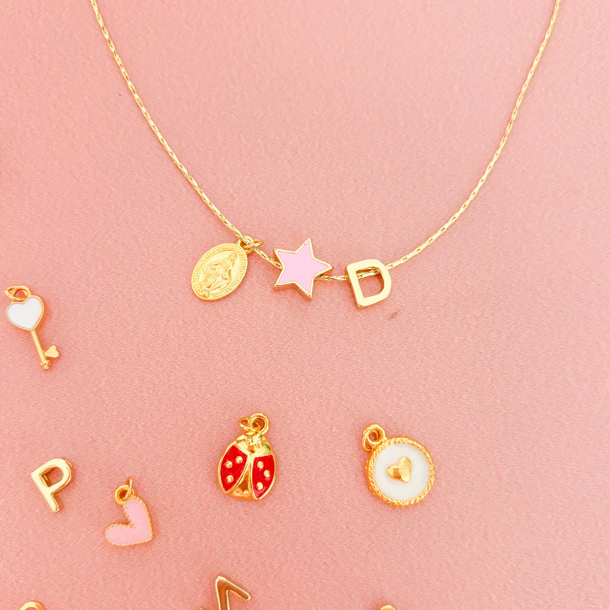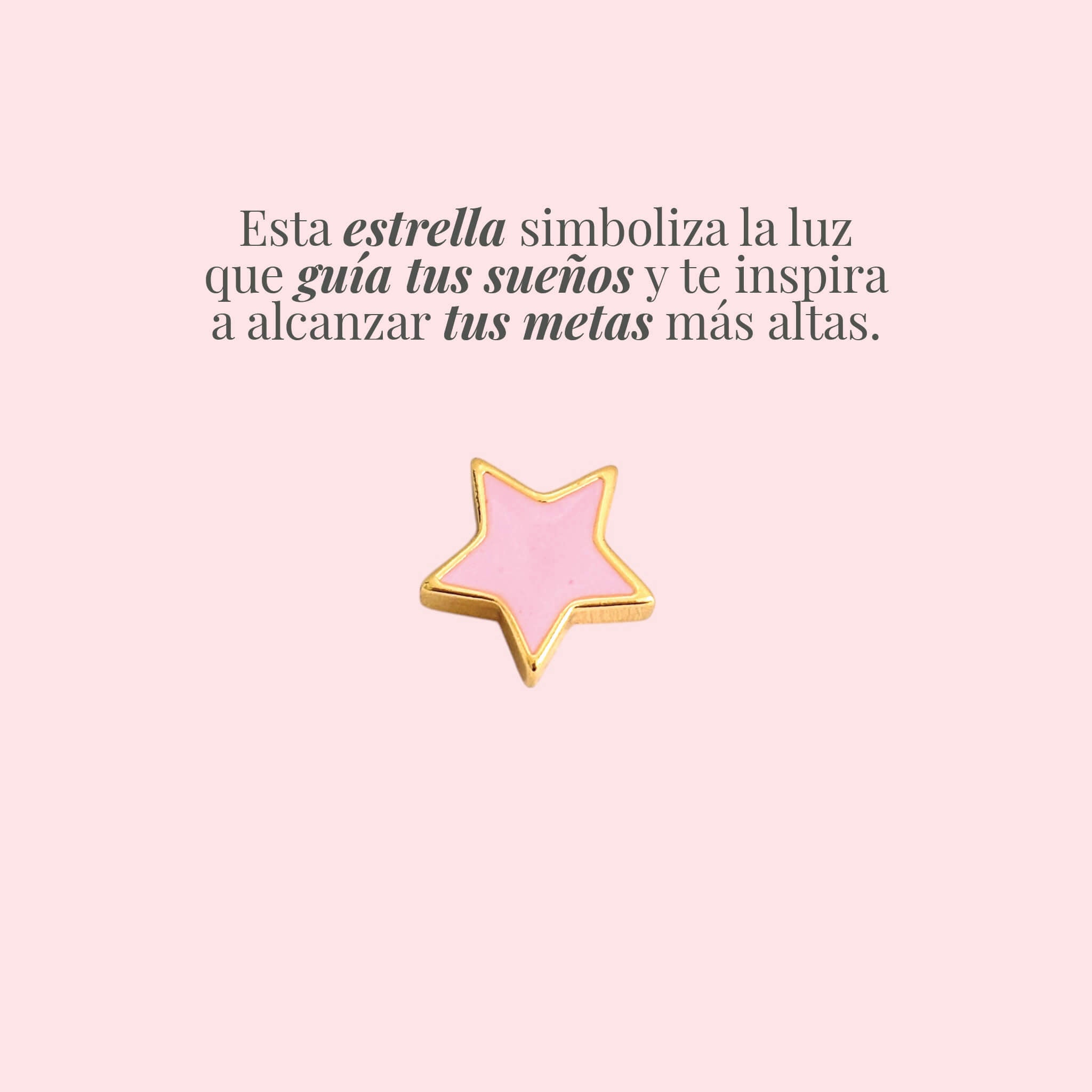 Personaliza tu cadena con este dije estrella color rosado. Brilla con luz propia y sigue tu camino con confianza. La estrella rosada simboliza espiritualidad y conexión con lo divino.