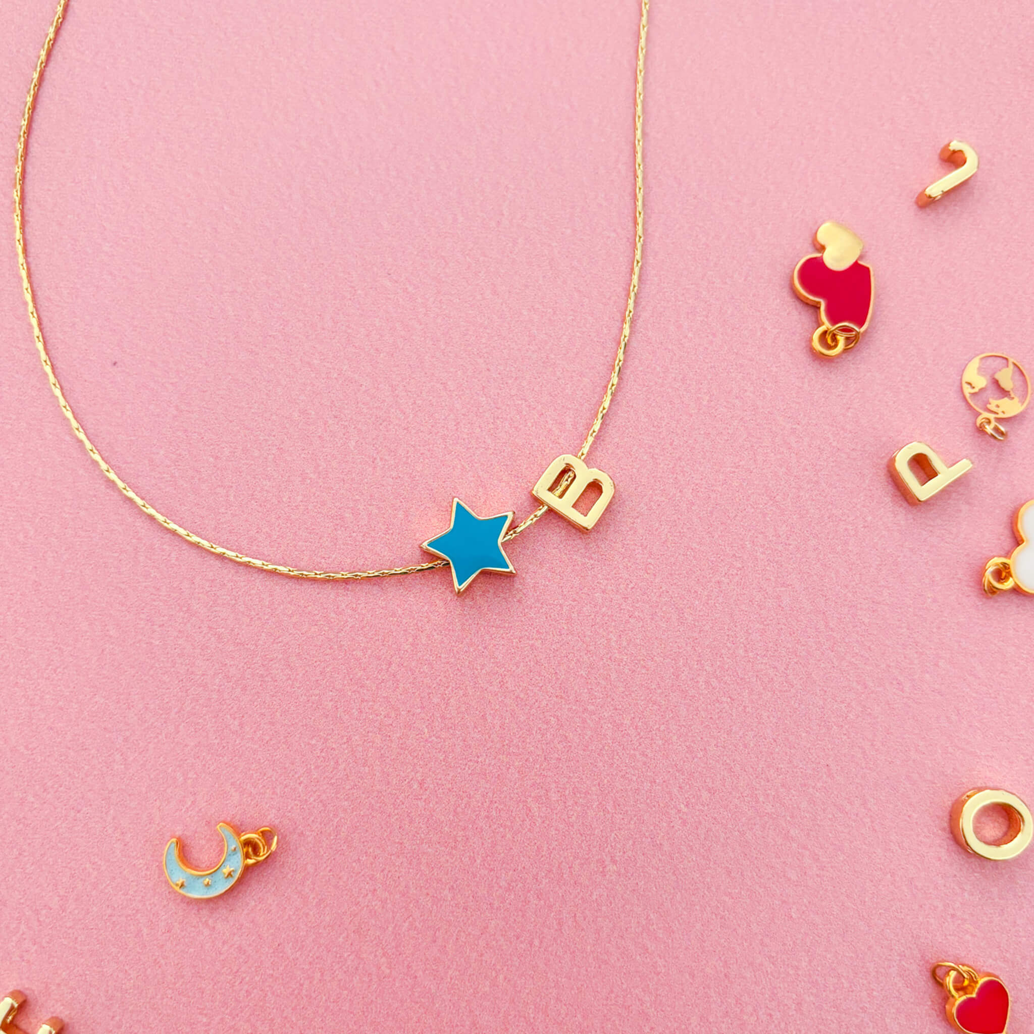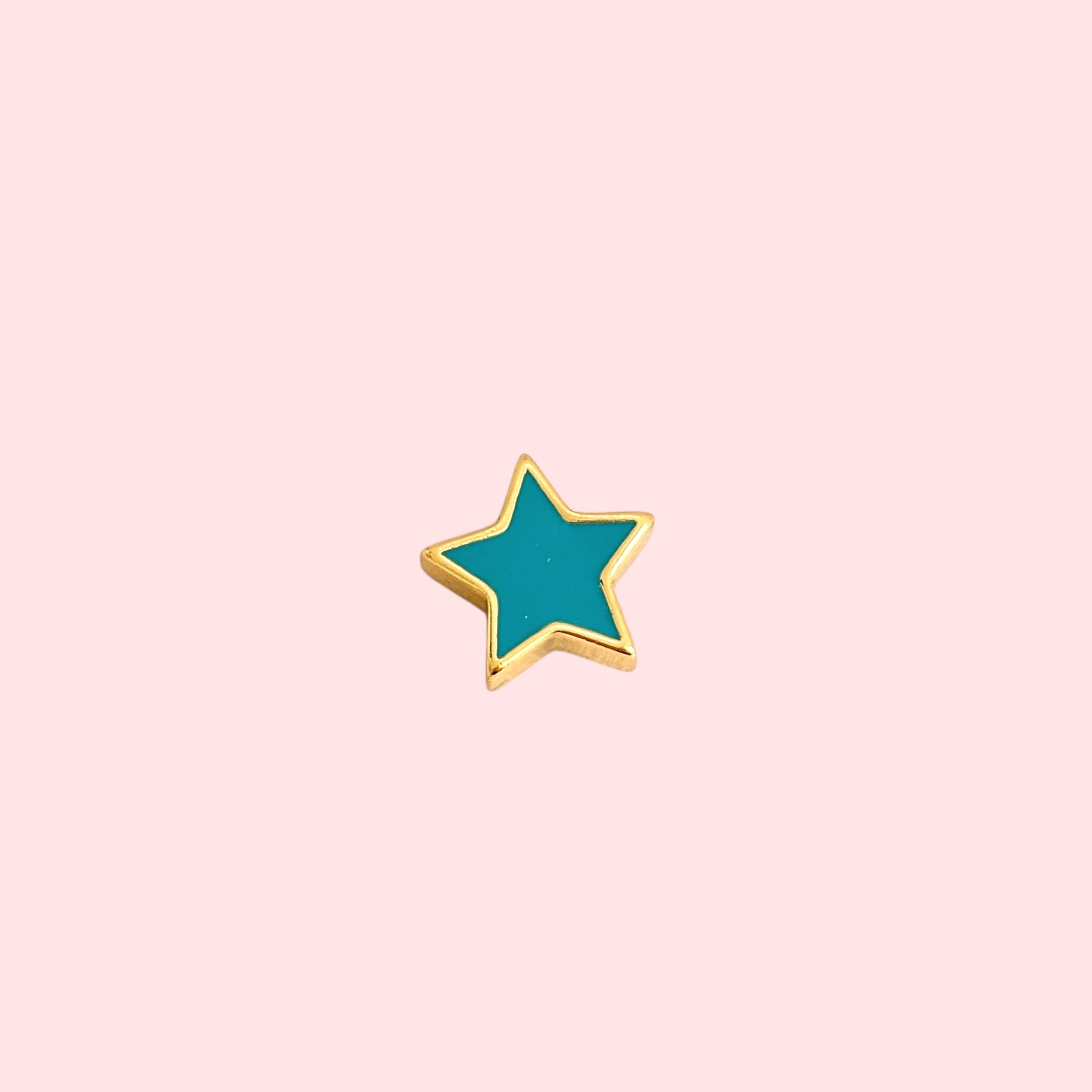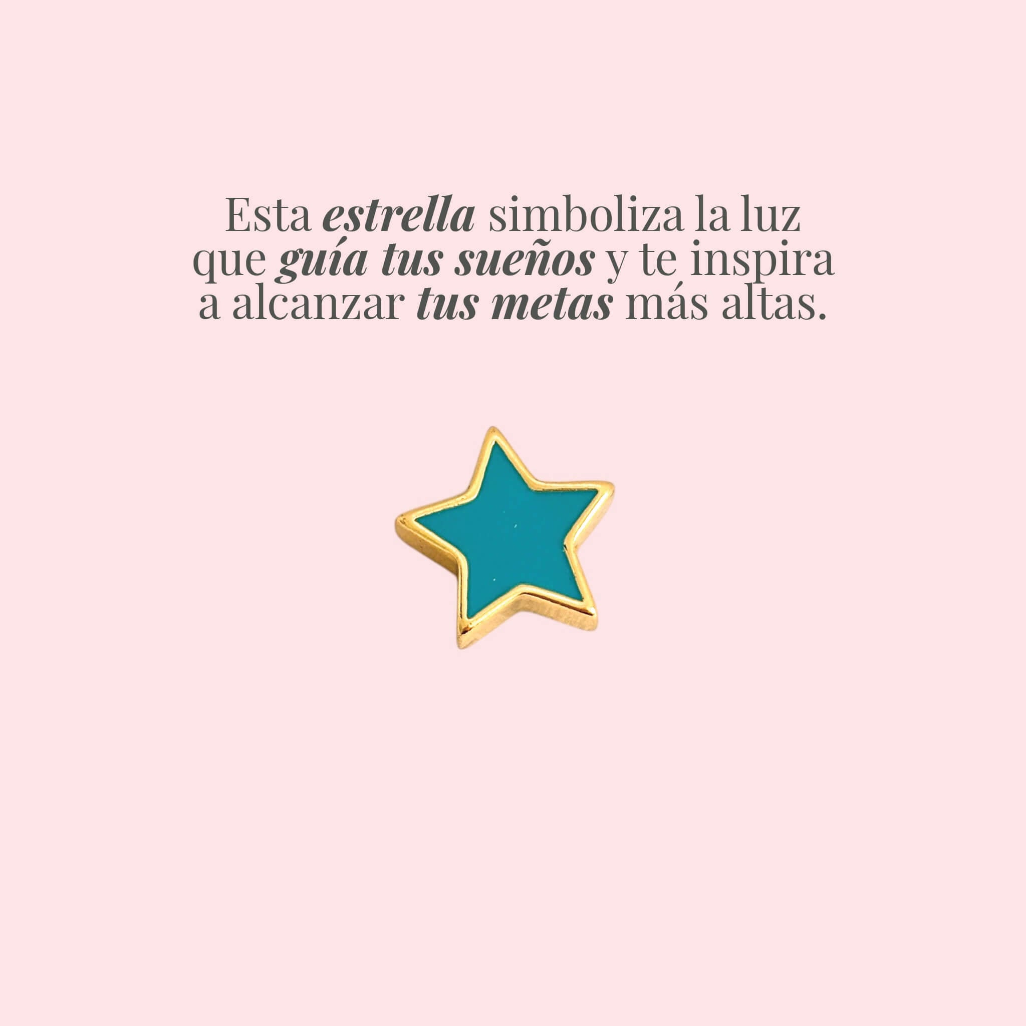 Personaliza tu cadena con este dije estrella color turquesa. Brilla con luz propia y sigue tu camino con confianza. La estrella turquesa simboliza guía e inspiración.