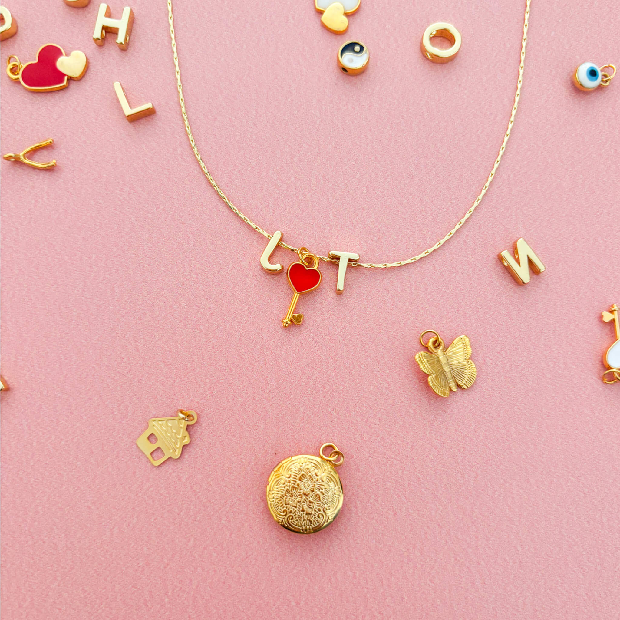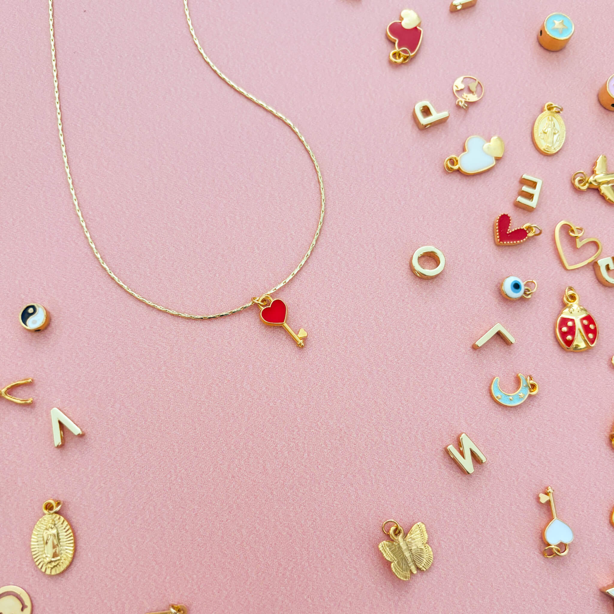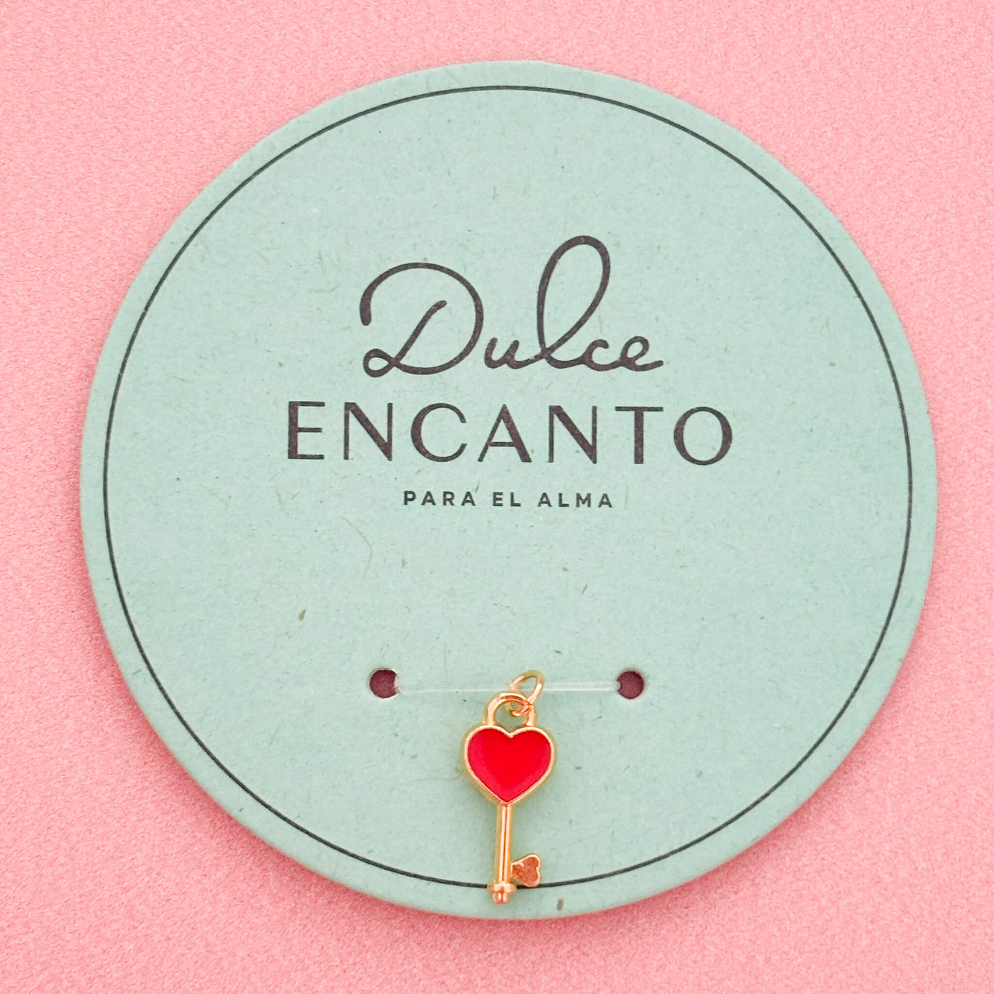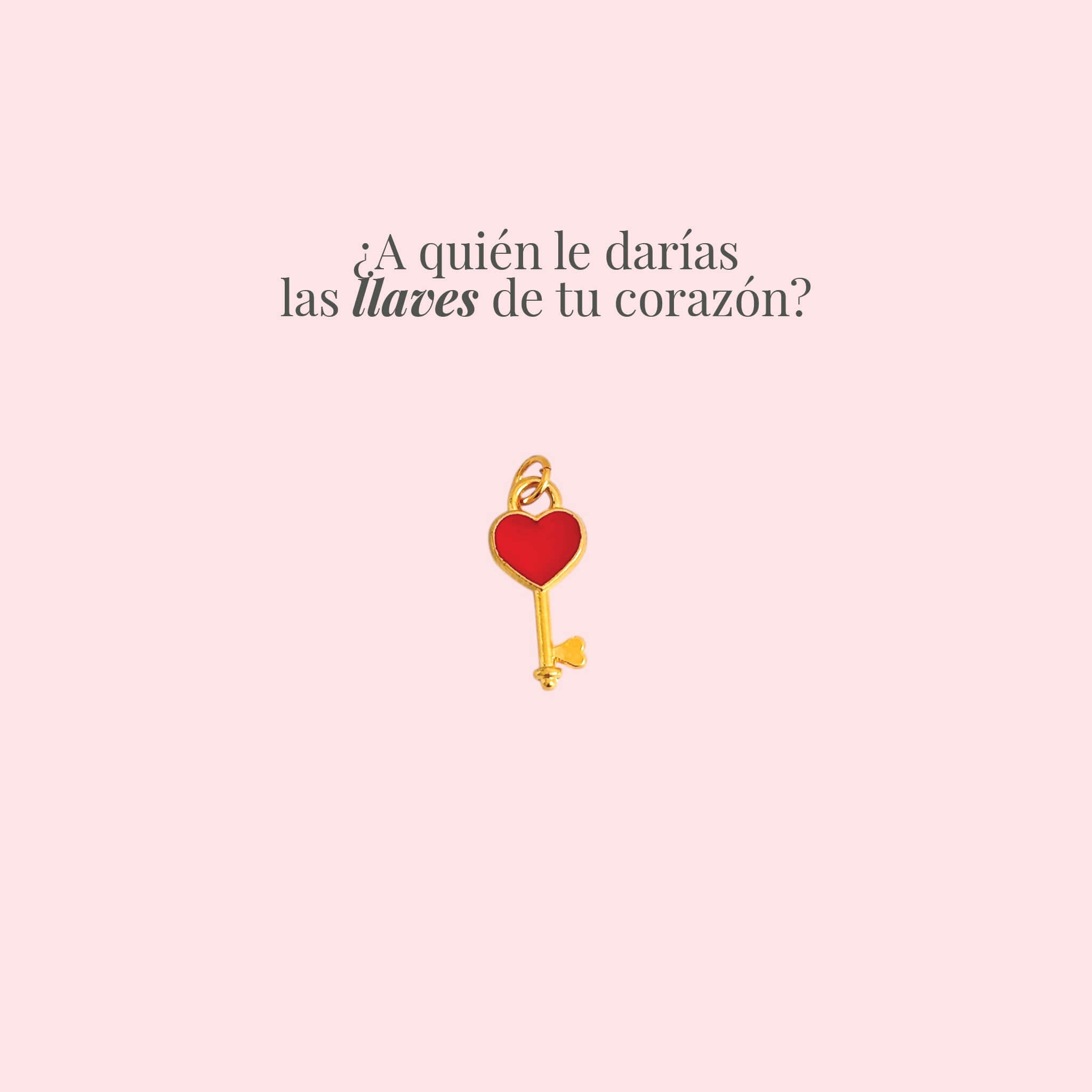 Personaliza tu cadena con este dije de llave con corazón rojo. El amor es la llave que abre todas las puertas. Un amuleto para atraer conexiones genuinas.