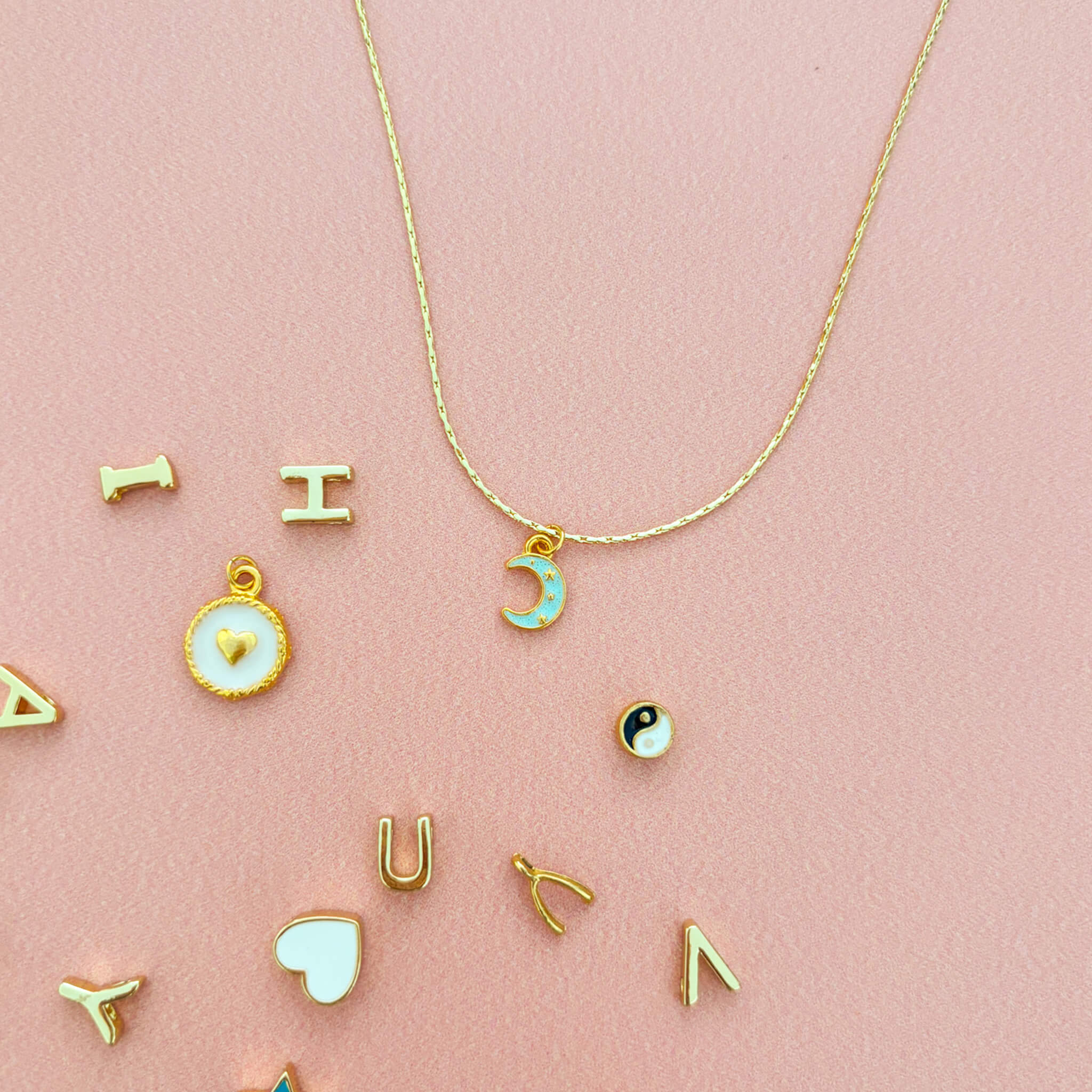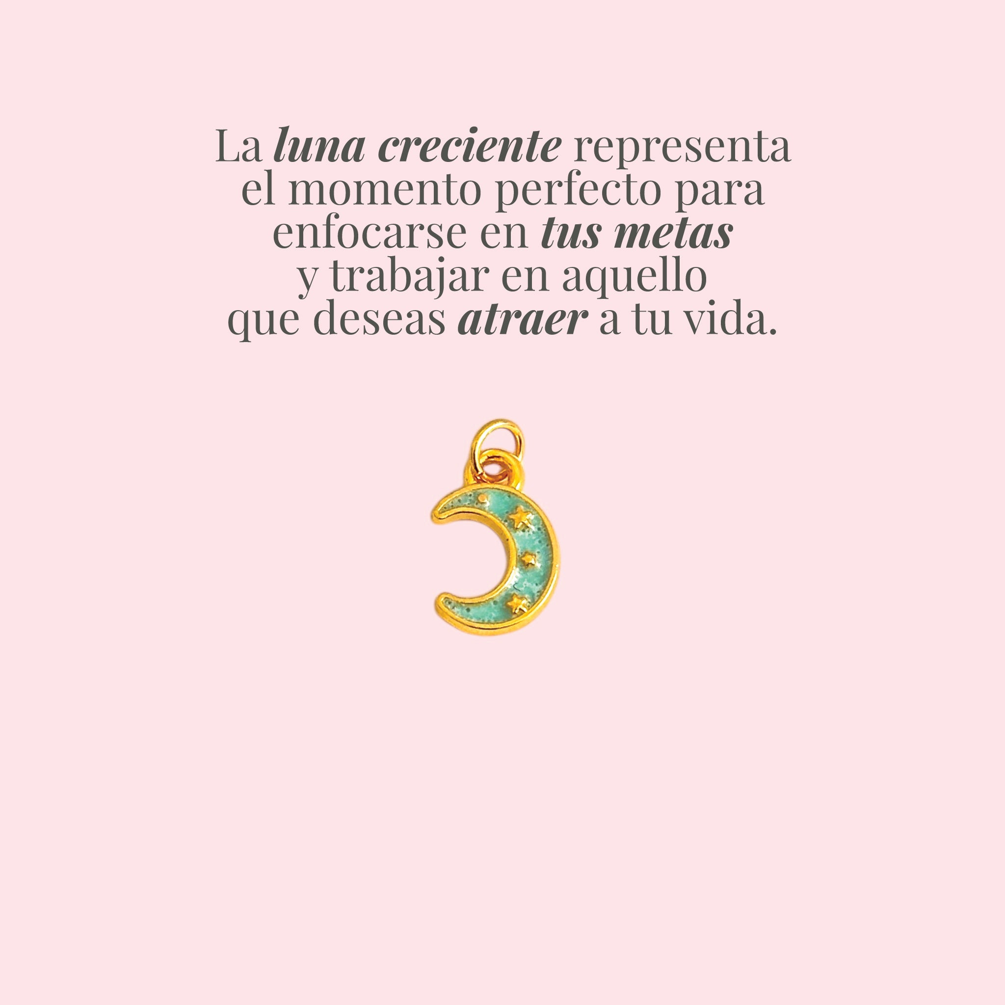 Personaliza tu cadena con este dije de luna color verde menta. La luna creciente representa el momento perfecto para enfocarse en tus metas y trabajar en aquello que deseas atraer a tu vida.