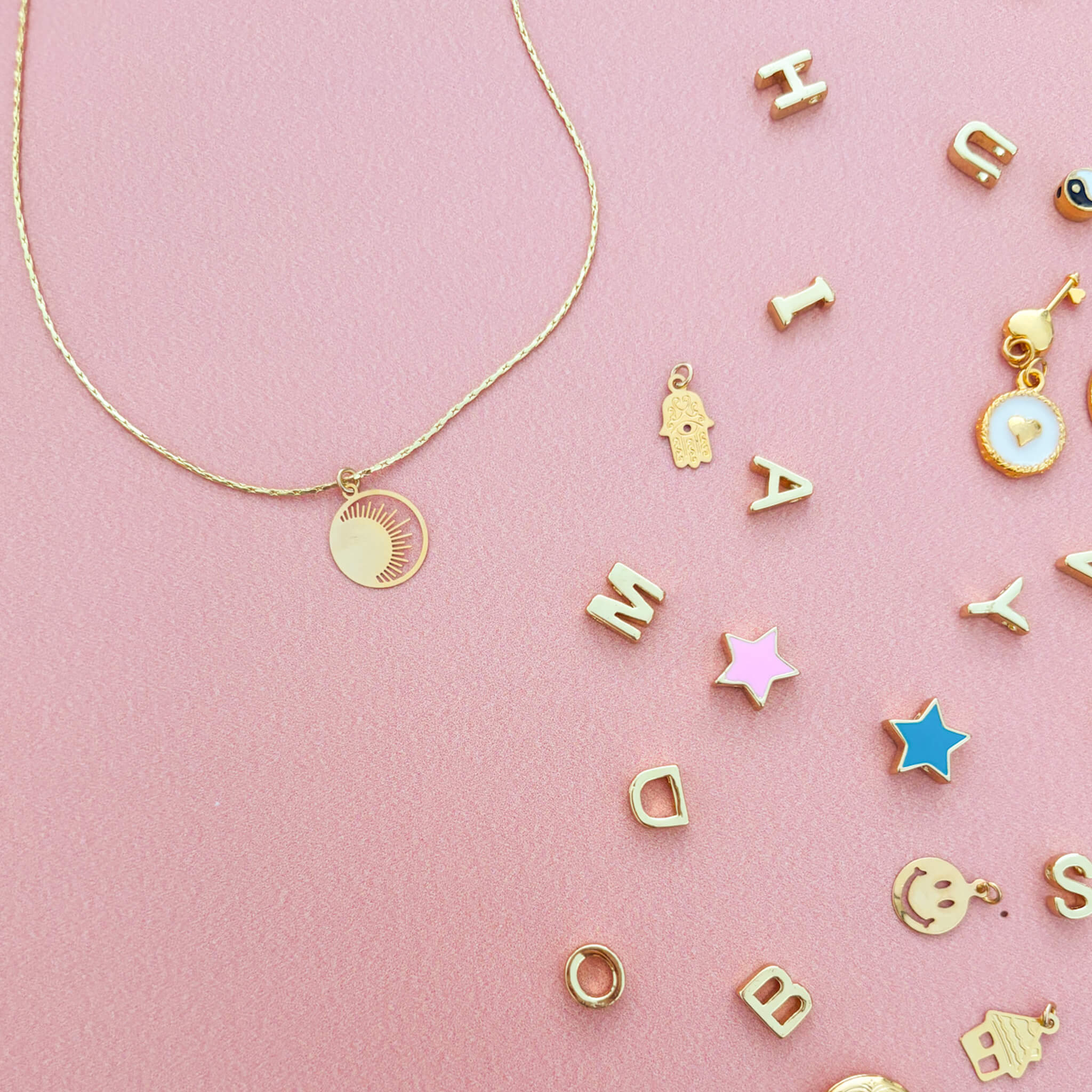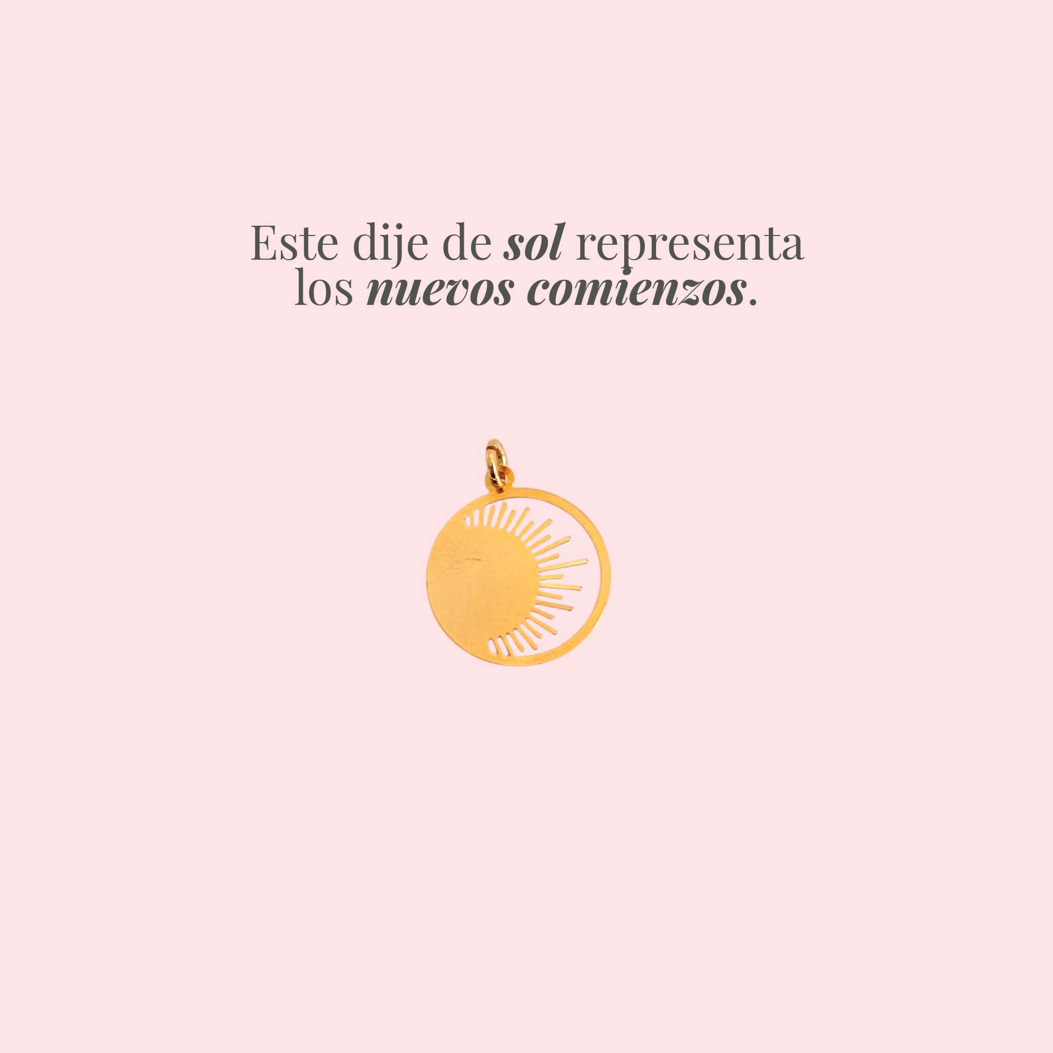 Personaliza tu cadena con este dije de sol con destellos. Ilumina tu camino y llena tu vida de energía positiva con el poder del sol.