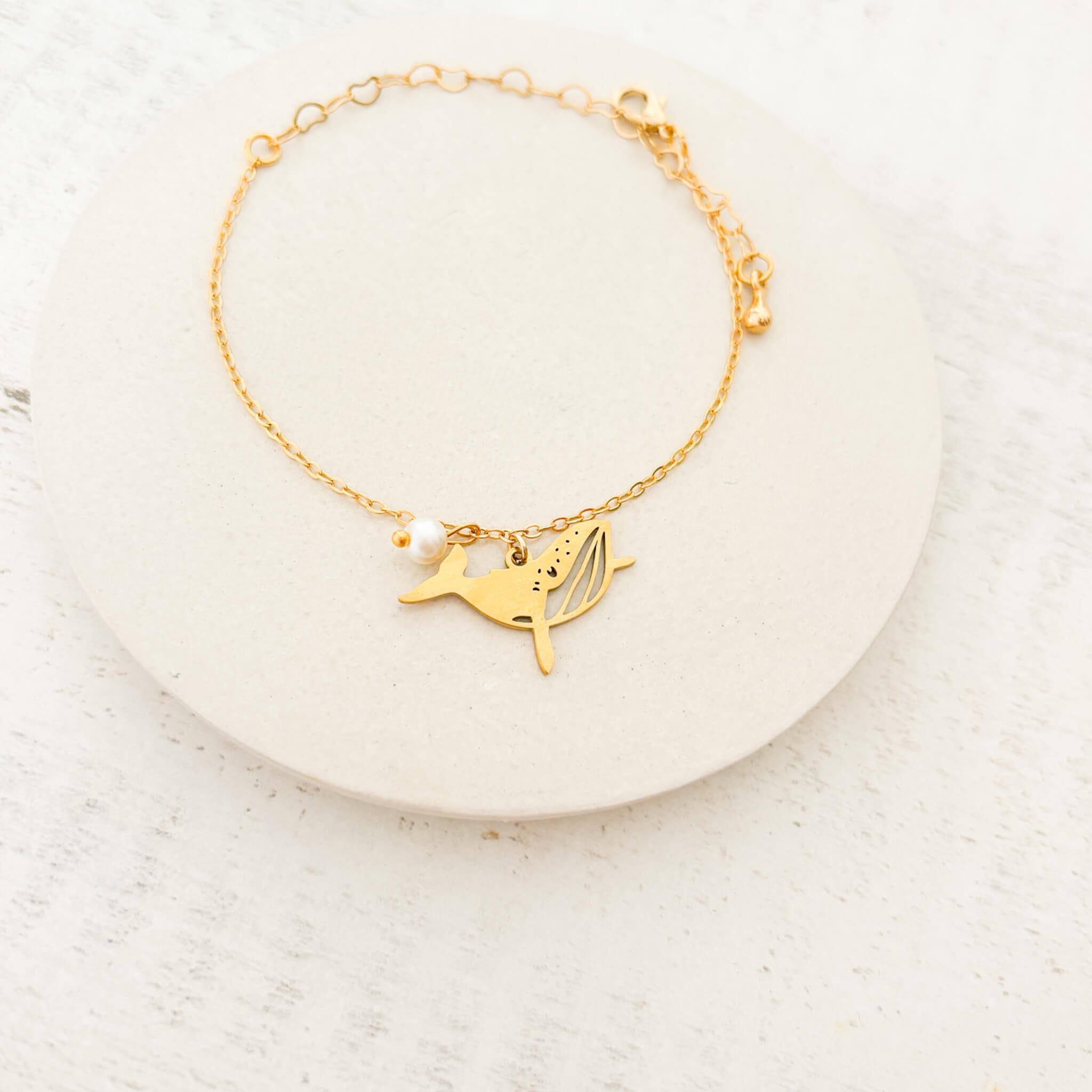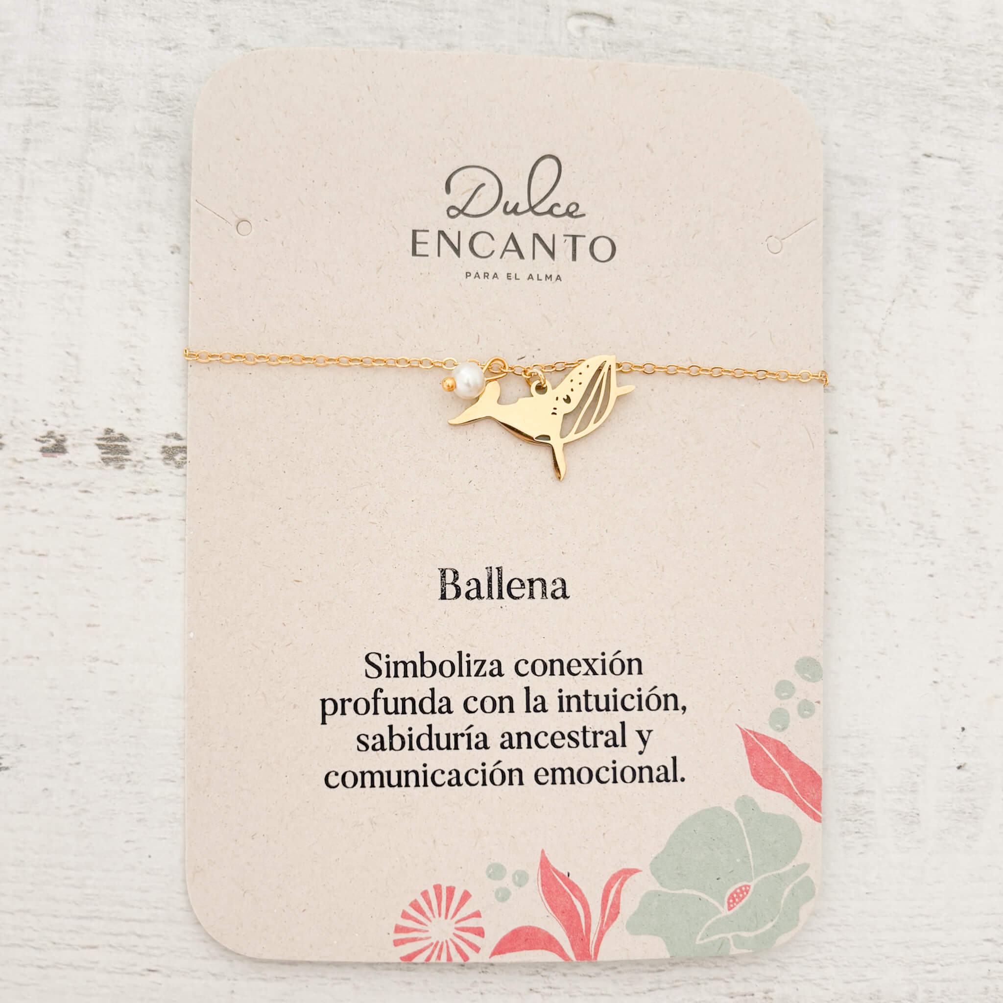 Pulsera ballena con mensaje para mujer. El dije ballena significa conexión profunda con la intuición, sabiduría ancestral y comunicación emocional. Nuestras pulseras están llenas de significado y amor para inspirar y empoderar.