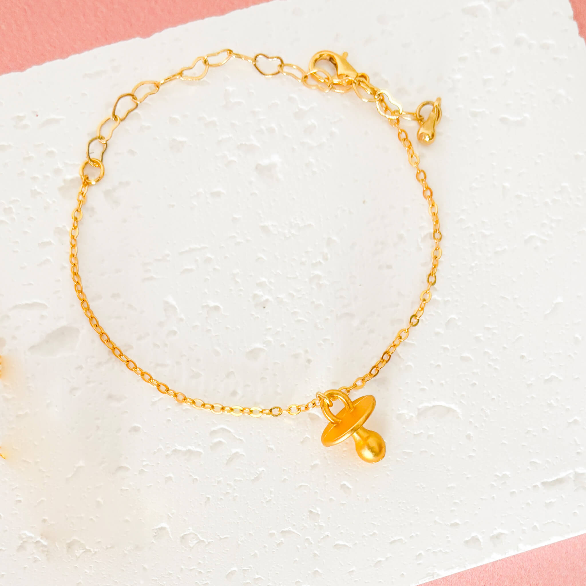 Descubre el significado detrás de nuestra Pulsera Chupete Bebé. Un símbolo de ternura, protección y amor incondicional. Una joya especial para quienes viven la maternidad con el corazón lleno de amor.