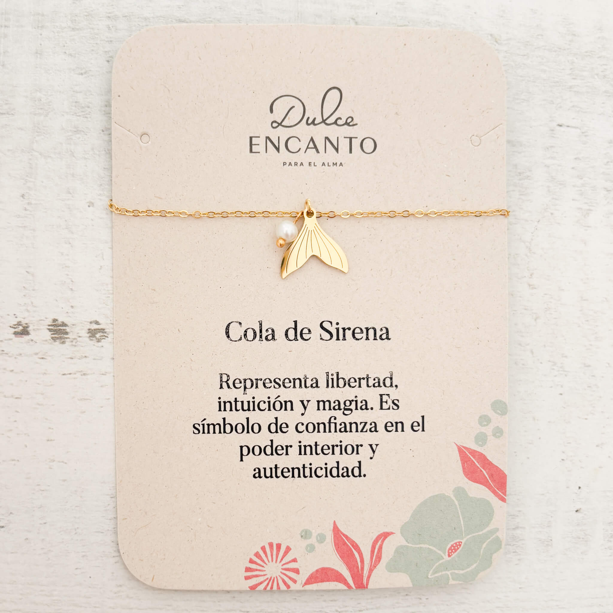 Pulsera cola de sirena con mensaje para mujer. El dije de cola de sirena representa libertad, intuición y magia. Es símbolo de confianza en el poder interior y autenticidad. Nuestras pulseras están llenas de significado y amor para inspirar y empoderar.
