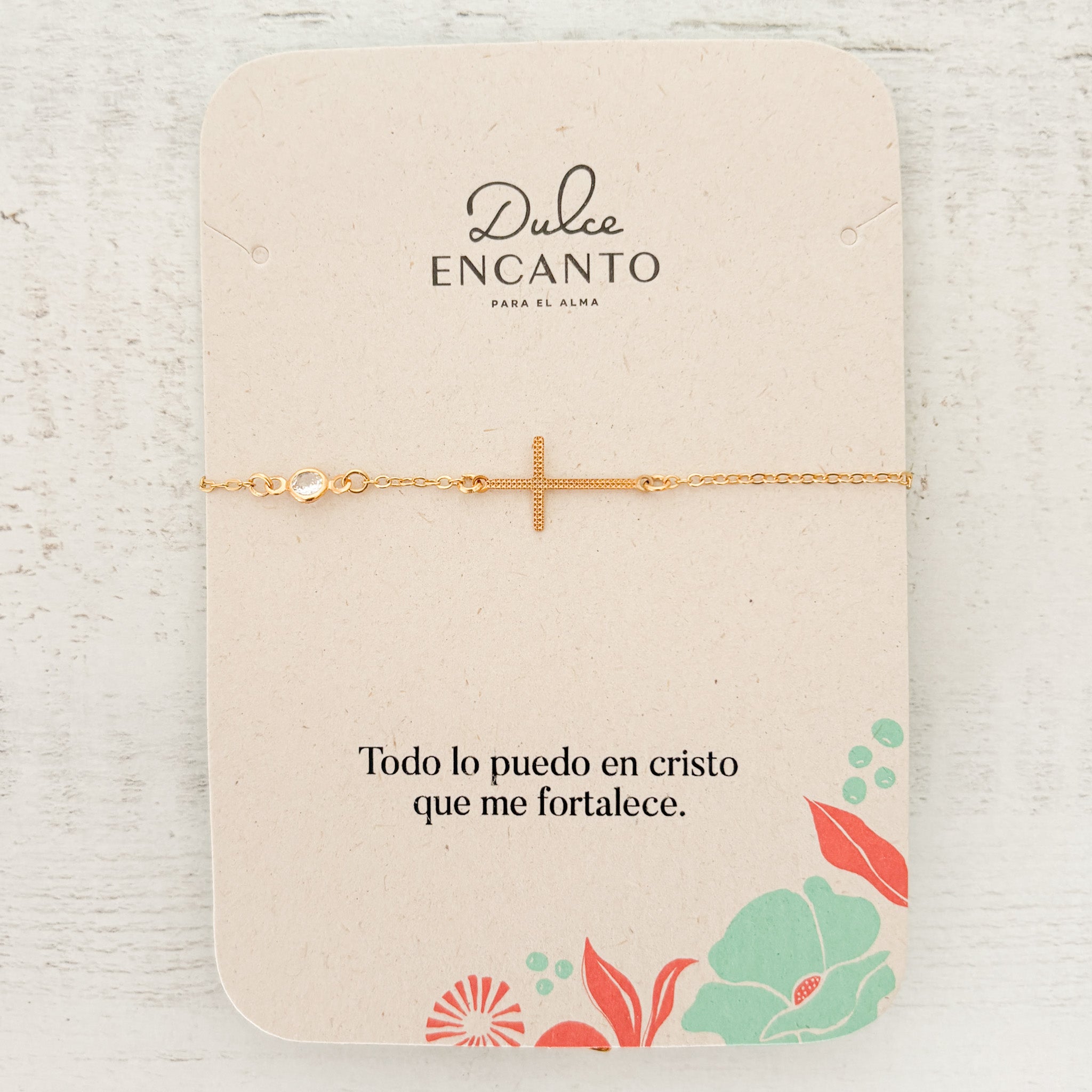 Conecta con tu fe y tu fuerza interior con nuestra Pulsera Cruz con Zircón. Un símbolo de protección, guía y esperanza. Una joya significativa que te acompaña en cada paso del camino con luz y confianza.
