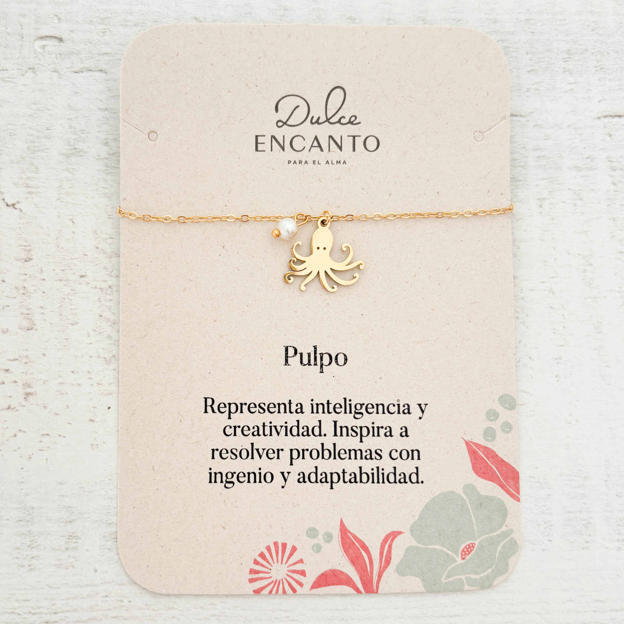 Pulsera pulpo con mensaje para mujer. El dije de pulpo representa inteligencia, creatividad y flexibilidad. Inspira a resolver problemas con ingenio y adaptabilidad. Nuestras pulseras están llenas de significado y amor para inspirar y empoderar.