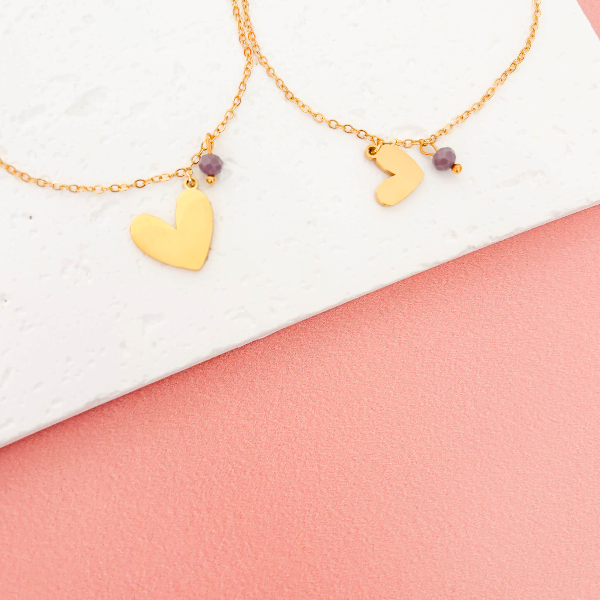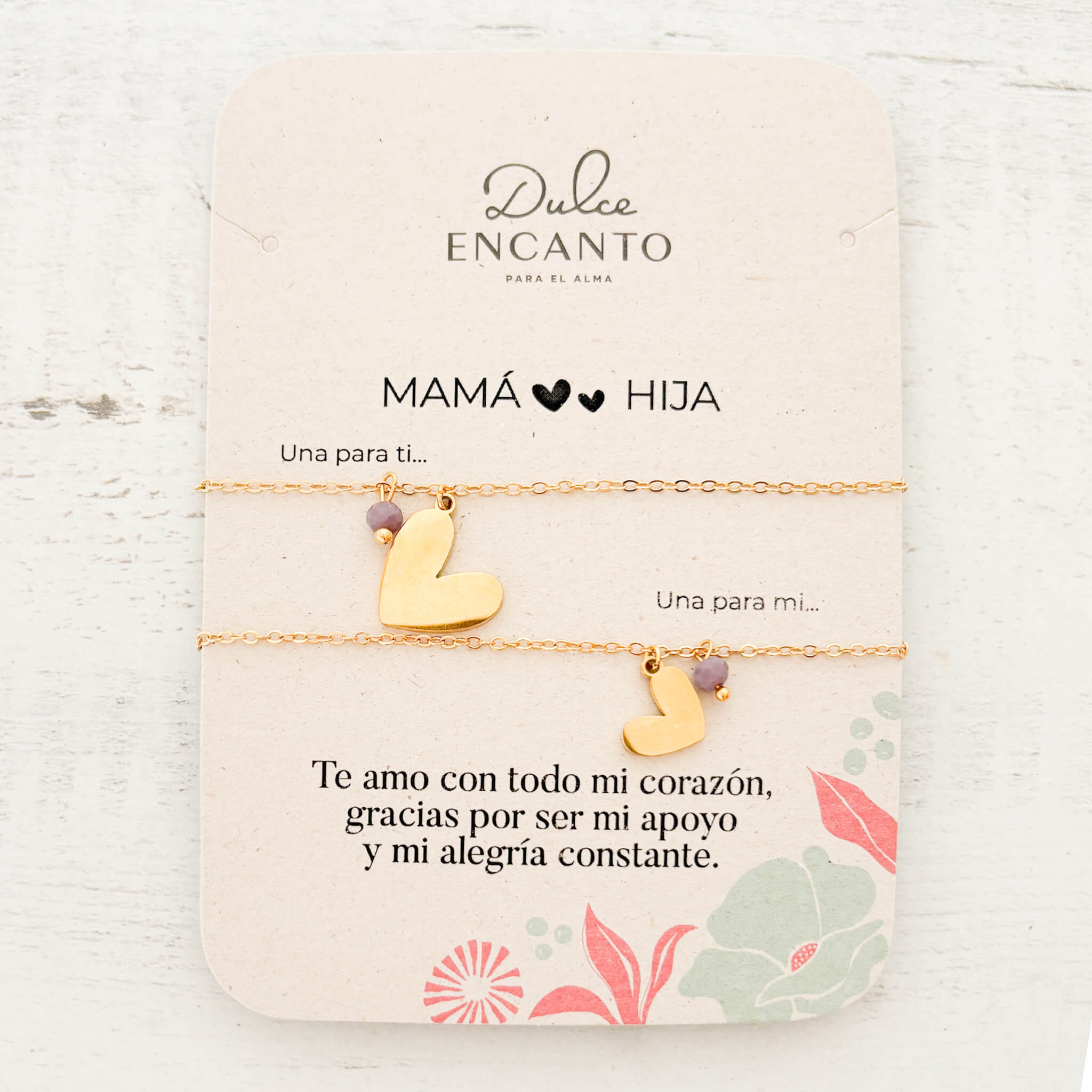 Conecta desde el alma con nuestras Pulseras Mamá e Hija Corazones Muranos Violeta. El corazón representa amor eterno, mientras que el murano violeta evoca espiritualidad, sabiduría y fuerza emocional. Llévenlas como símbolo de una relación que trasciende el tiempo y florece con amor y respeto mutuo.