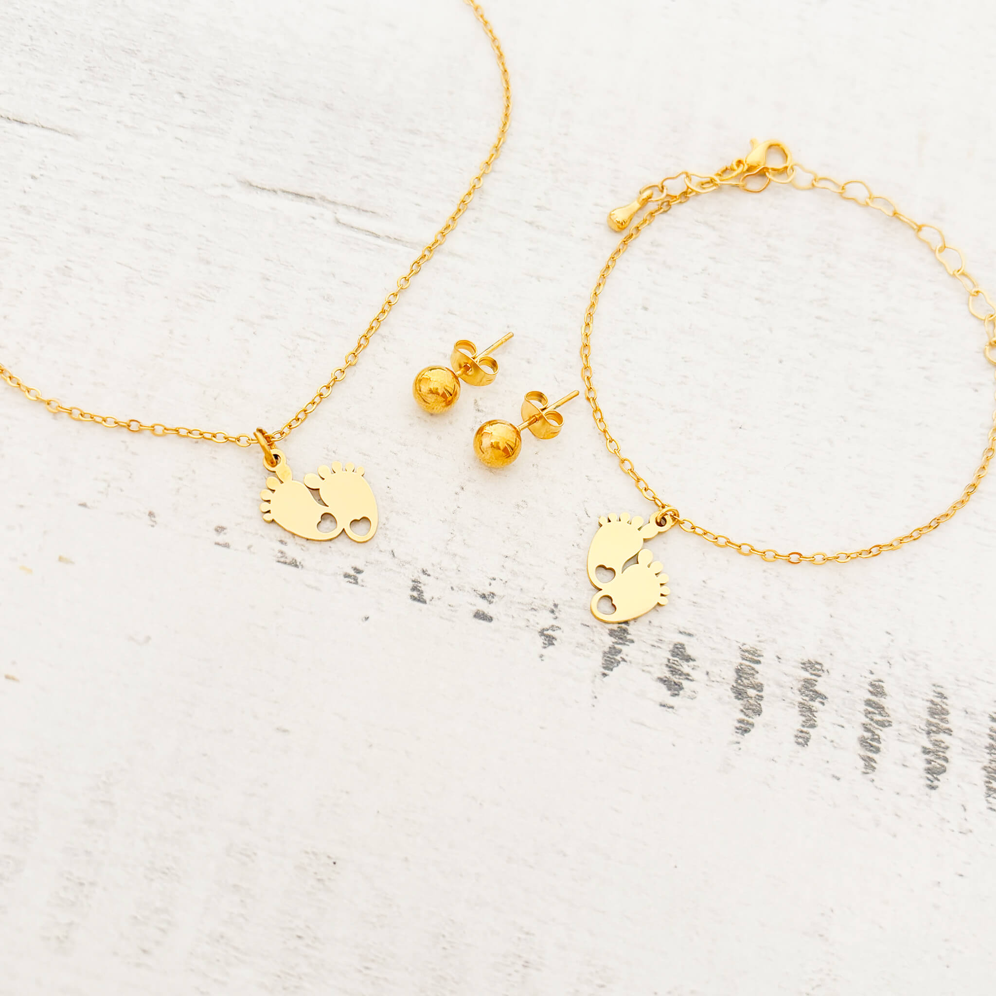 El set cadena pies bebé, pulsera pies bebé y topos es un homenaje al amor más puro y tierno. Este set representa el comienzo de una nueva vida, la dulzura de la maternidad y el vínculo eterno entre madre e hijo/a.